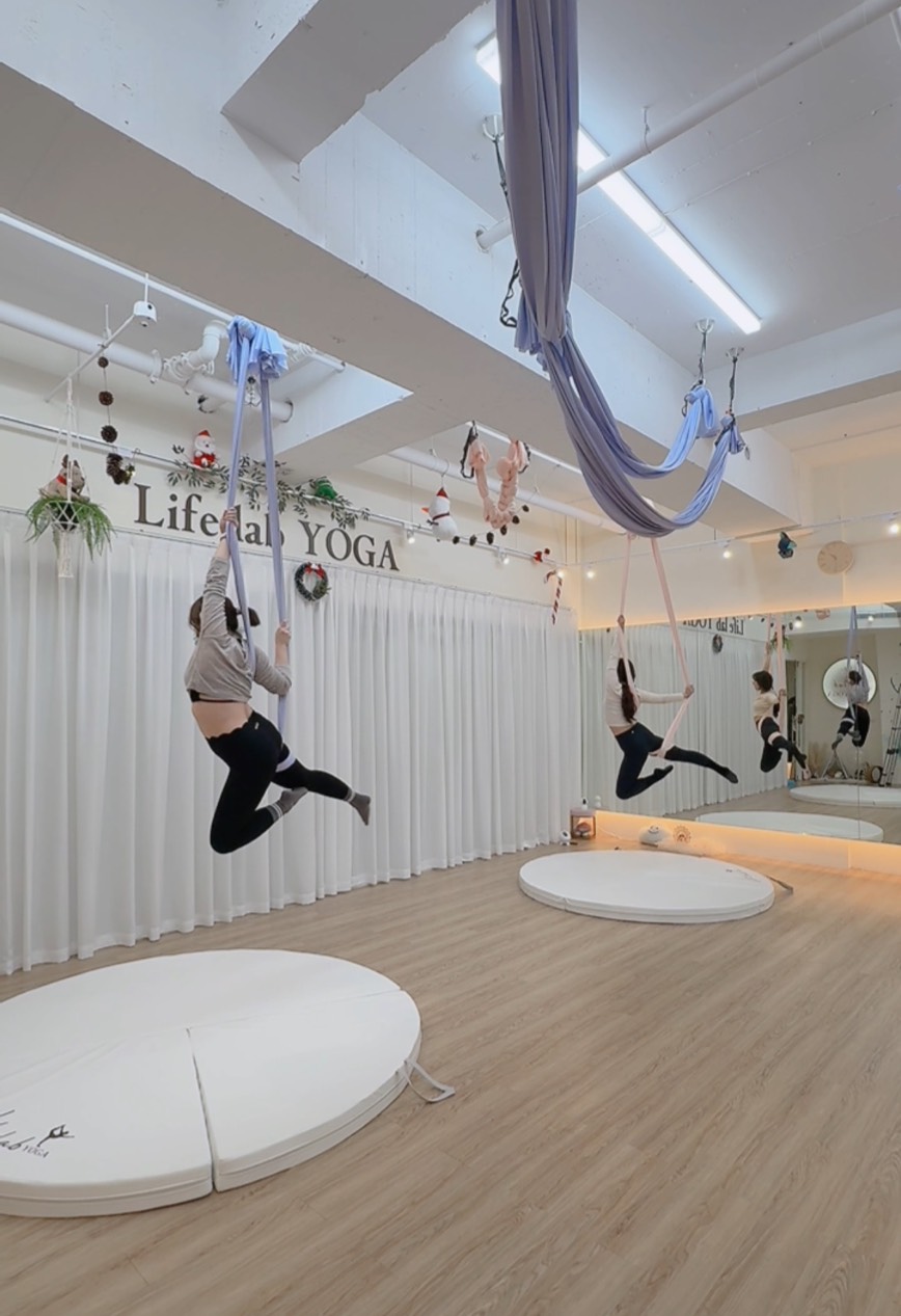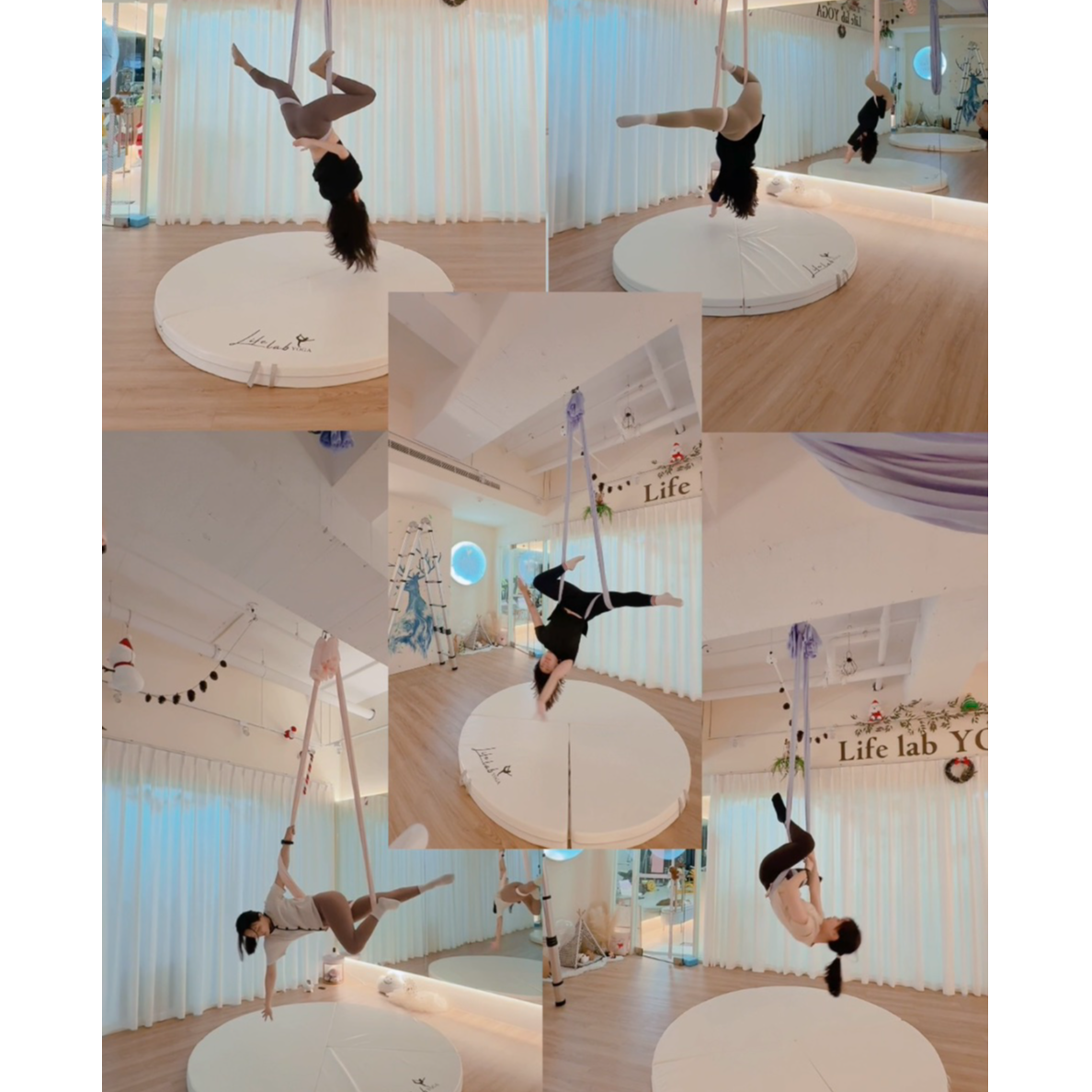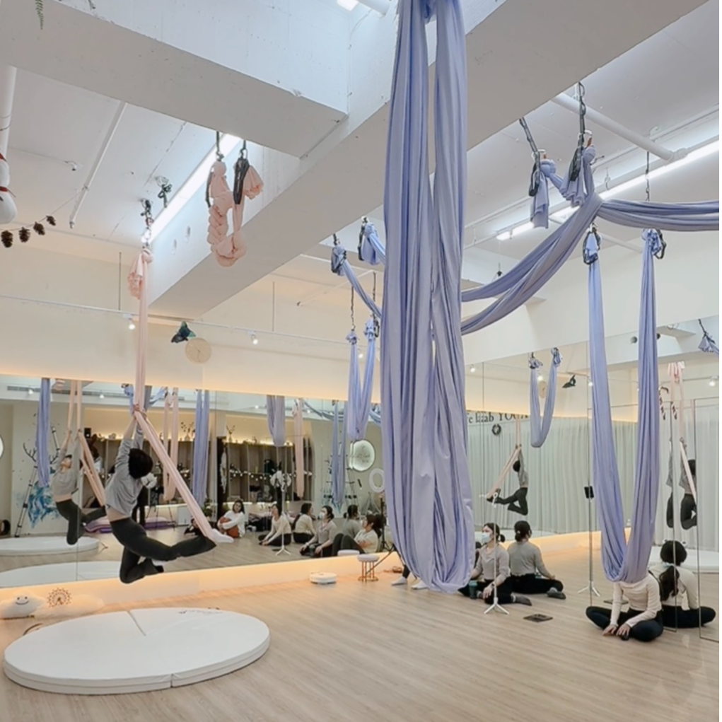 在每堂課的練習中,學員不僅能逐步增強體能,也能與掛布建立默契,享受在空中自由舞動的樂趣。透過懸吊動作,不僅鍛鍊全身肌肉,還能有效紓壓,提升身心靈平衡。