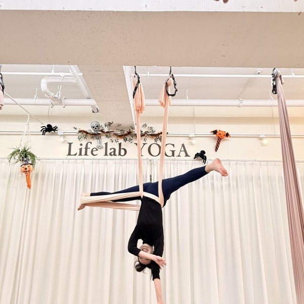 課程中運用懸掛在空中的絲質掛布,進行各式瑜珈體位法與花式變化,讓練習者在離地約70~80公分的高度,彷彿在空中飛翔般完成動作,創造獨特而自由的運動體驗。